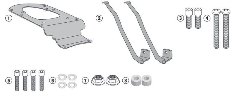 Soporte de maleta para motocicletas Mp3 300 hpe 19>20 y Yourban 125-300 (11>18), fabricado en metal resistente. Incluye placa de montaje, barras de refuerzo y juego completo de tornillos, arandelas y tuercas para una instalación segura y duradera. Ideal para mejorar la carga y organización en tu moto sin necesidad de parrilla m5m.