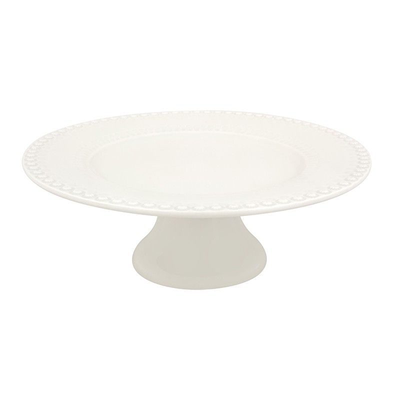 Soporte para tartas grande de loza en blanco, ideal para presentar pasteles, postres o frutas con estilo. Con base elevada y borde decorado con detalles en relieve, aporta un toque elegante a tu mesa. Perfecto para ocasiones especiales o uso diario en cocina y comedor. Fácil de limpiar y resistente.