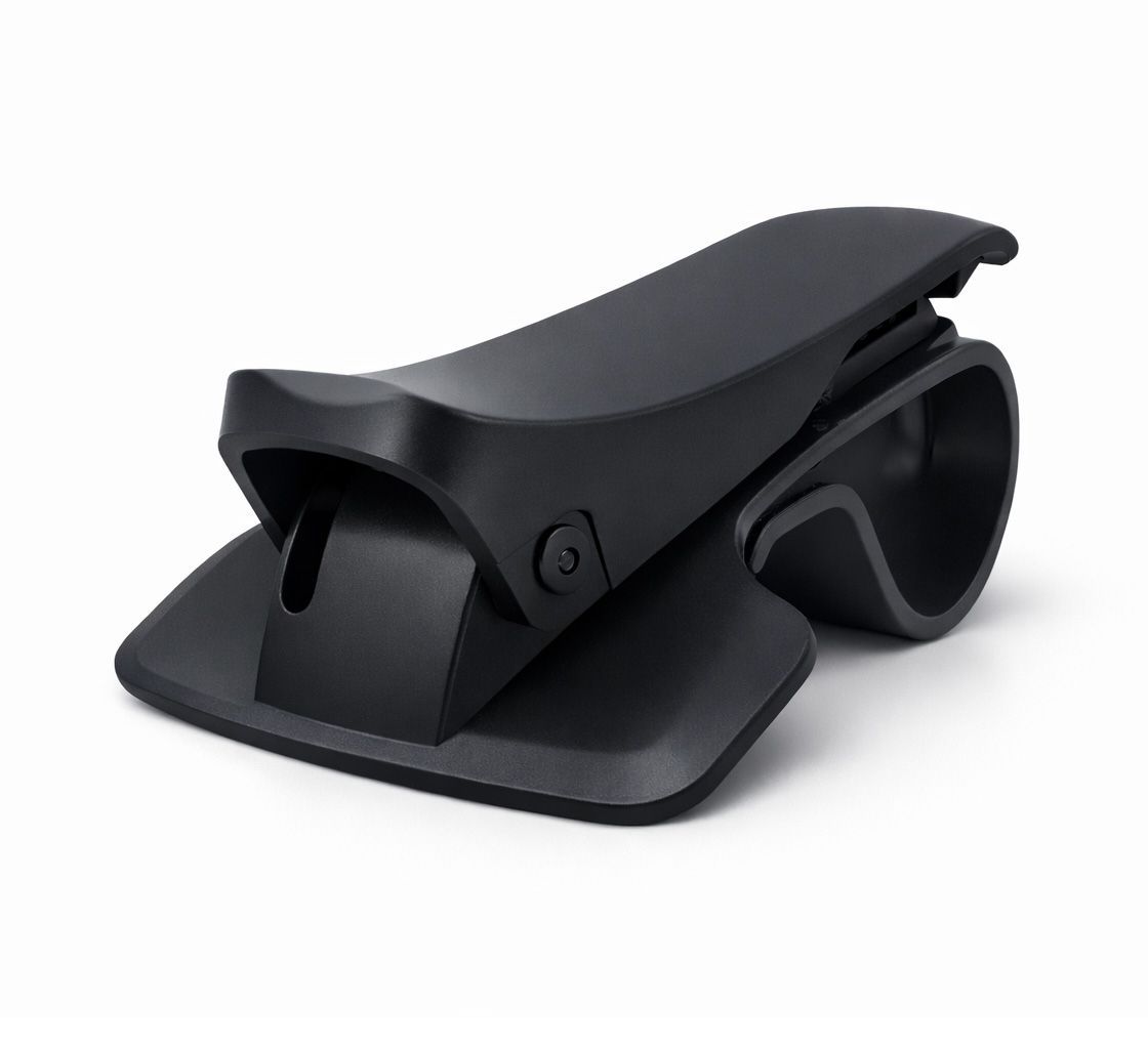 Soporte para teléfono con pinza de fácil ajuste, diseñado para colocarse en el cuadro de mandos del vehículo. Fabricado en plástico resistente, ofrece una sujeción segura y estable para tu móvil mientras conduces. Ideal para uso diario en coches, camiones o motos. Incluye base antideslizante y mecanismo de apertura rápida para una instalación senci