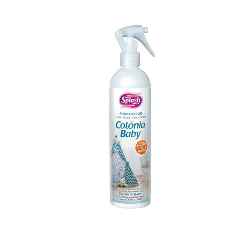 Ambientador Splash para tejidos en formato spray, con fragancia Colonia Baby ideal para ropa y textiles de bebé. Su aroma suave y delicado perfuma la ropa sin dañar los tejidos. Perfecto para mantener el hogar con un aroma fresco y agradable. Fácil de usar con pulverizador práctico.
