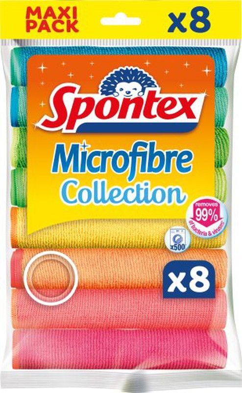 Pack de 8 bayetas de microfibra Spontex en colores vibrantes, ideales para limpiar superficies sin rayar. Fabricadas en microfibra de alta calidad, resisten hasta 500 lavados y eliminan hasta el 99% de bacterias y virus. Perfectas para uso diario en cocina, baño y hogar. Incluye colores como azul, verde, amarillo, naranja, rosa y rojo. Ideal para u