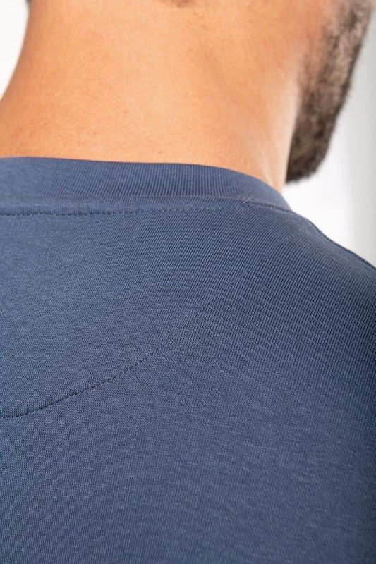 Sudadera ecorresponsable en color azul marino, fabricada con algodón sostenible. Diseño minimalista con cuello redondo y costuras precisas. Ideal para uso diario, ofrece comodidad y estilo sostenible. Perfecta para adultos que buscan prendas de calidad con impacto ambiental reducido.