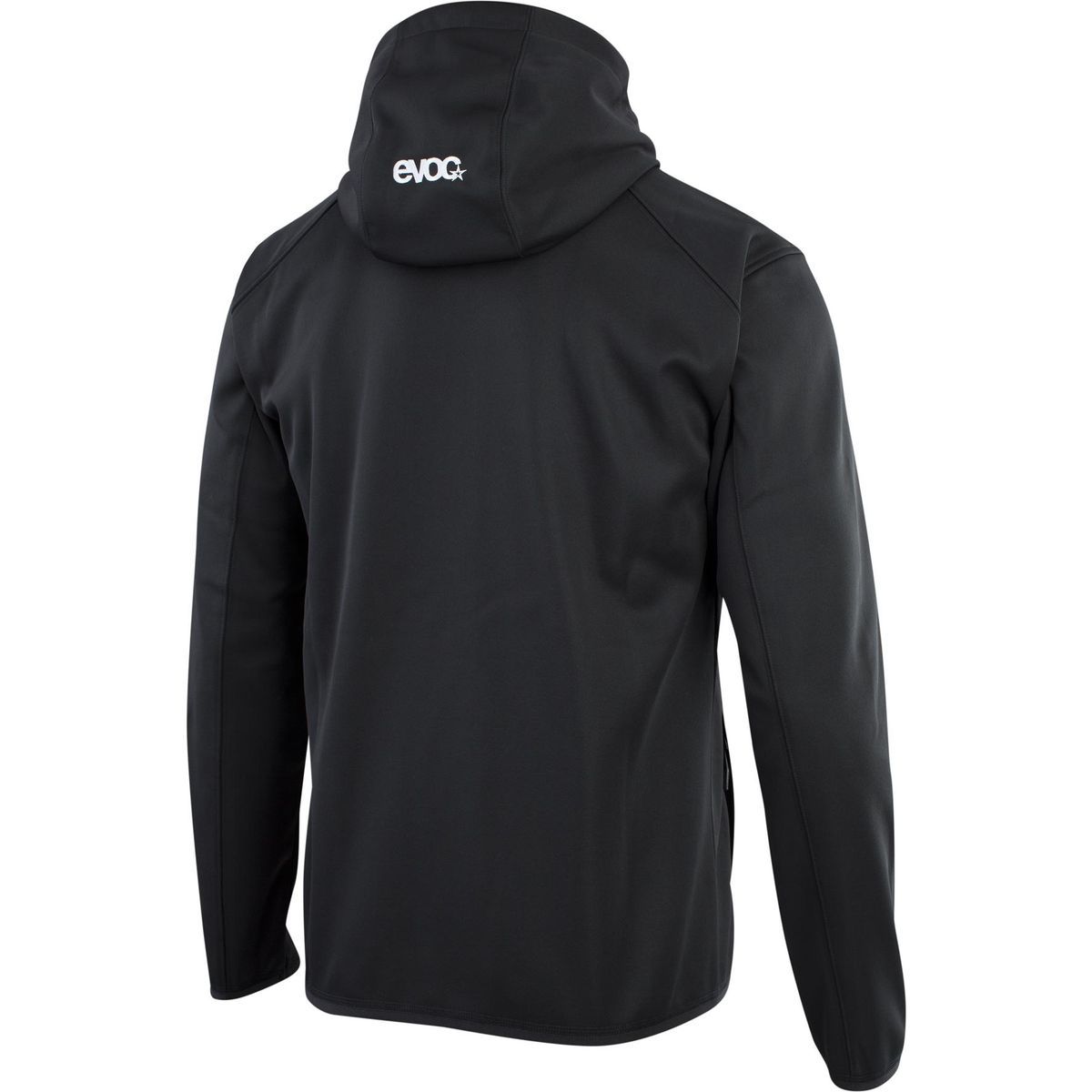 Sudadera Evoc para hombre, ideal para ciclismo y actividades deportivas. Fabricada en poliéster de alta calidad, ofrece comodidad y libertad de movimiento. Diseño negro liso con logo blanco en la capucha. Perfecta para entrenamientos al aire libre y uso diario en entornos activos.