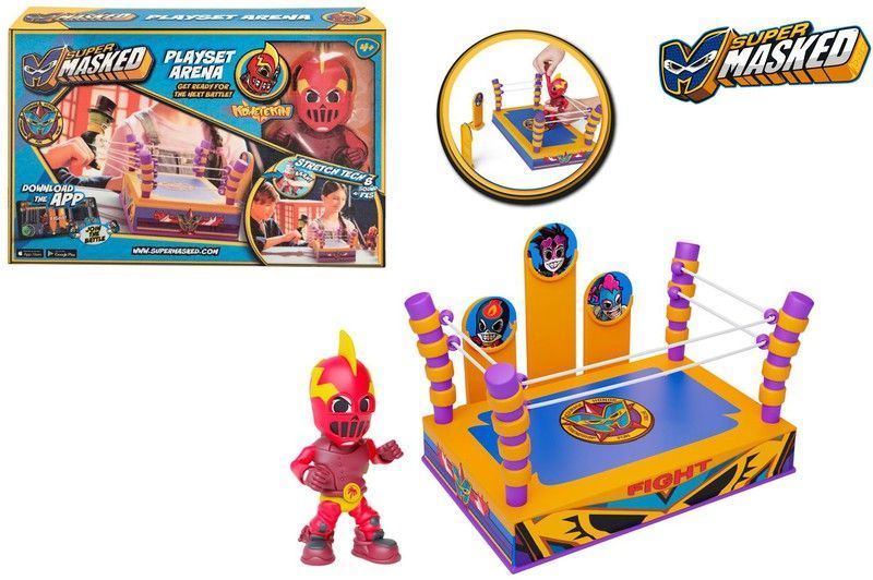 Juego de lucha Super Masked con estadio de entrenamiento y figura de luchador. Ideal para niños que disfruten de aventuras de acción y combate. Fabricado en plástico resistente, con colores vibrantes y diseño detallado. Incluye ring con postes y cuerdas, perfecto para recrear emocionantes batallas. A partir de 3 años.