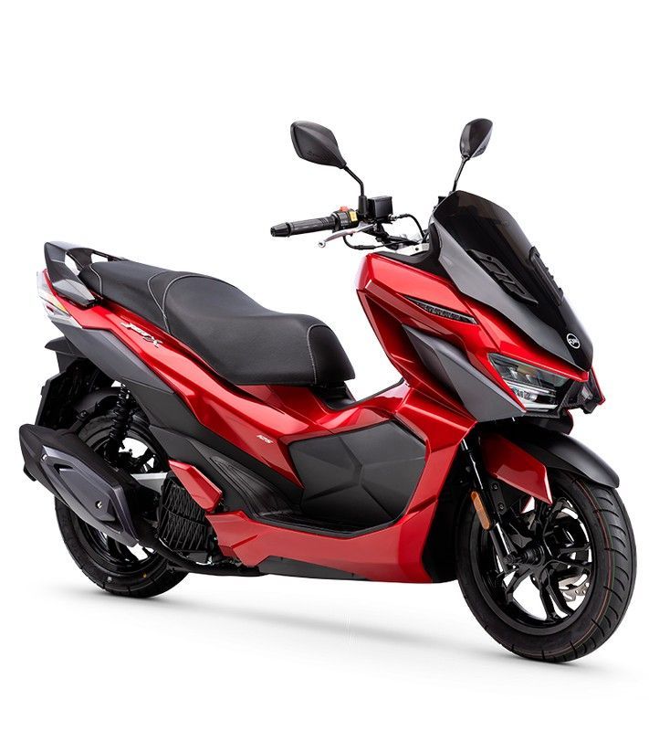 El SYM Jet X 125 E5+ es un escúter urbano de alto rendimiento, ideal para desplazamientos diarios en ciudad. Con un diseño deportivo en rojo y negro, faros LED, llantas negras y acabados en plástico y metal de alta calidad, ofrece comodidad y estilo. Perfecto para adultos que buscan eficiencia y diseño moderno en su transporte diario.