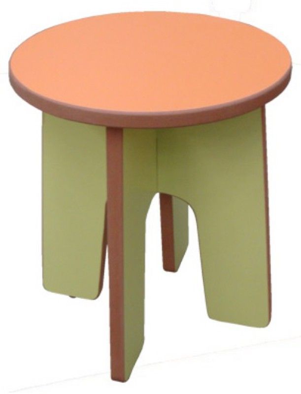 Taburete cocinita para niños con diseño divertido y seguro. Asiento redondo en color naranja y patas verdes con detalles marrones, fabricado en madera de calidad. Ideal para juegos de cocina y actividades educativas. Fomenta la imaginación y el juego creativo en espacios infantiles.