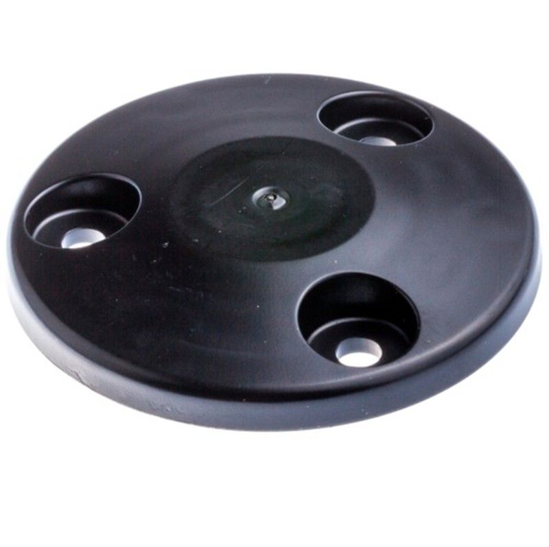 Tapa de plástico negro para escudo protector de robots cortacésped Automower 305 (2020), 310, 315 y 315X. Diseño circular con tres orificios periféricos y uno central, ideal para mantener la protección del equipo en perfectas condiciones. Fácil instalación y compatibilidad garantizada con modelos Husqvarna. Reemplazo directo para mantener el rendim
