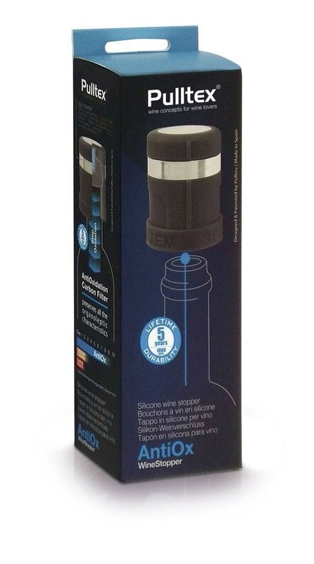 Tapón de vino Pulltex AntiOx negro, diseñado para conservar el vino y protegerlo del oxígeno. Ideal para amantes del vino que desean mantener su bebida fresca y con sabor original durante más tiempo. Fácil de usar y de alta calidad, este tapón es perfecto para cualquier ocasión. Incluye tecnología avanzada para sellar la botella de forma segura.