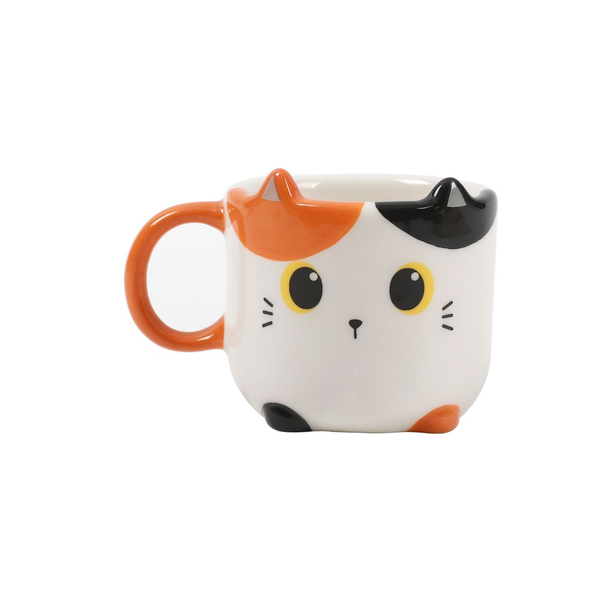 Taza de espresso con diseño de gato en cerámica, ideal para amantes de los animales y el café. Con detalles en blanco, naranja y negro, incluye orejas y patas en relieve. Perfecta para desayunos, meriendas o como regalo original. Diseño divertido y funcional para uso diario.