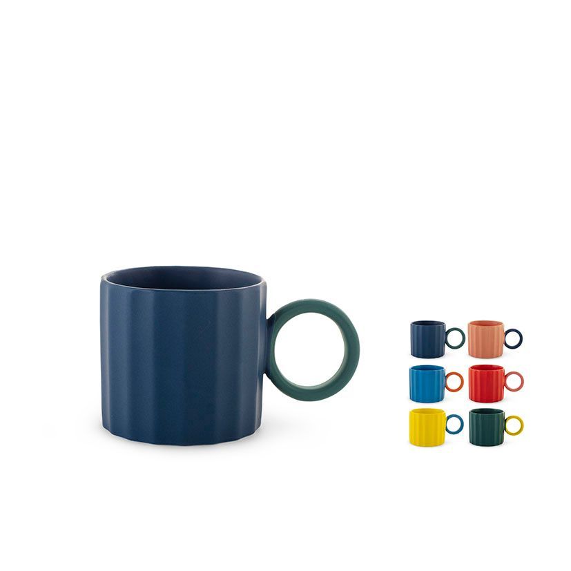 Tazas Cafe Delight de 25 cl, ideales para disfrutar tu café o té con estilo. Fabricadas en cerámica de alta calidad con acabado mate y diseño moderno con asa circular. Disponibles en una variedad de colores vibrantes: azul, naranja, rojo, amarillo, verde y marrón. Perfectas para el hogar, oficina o regalo. Pack de 6 unidades.