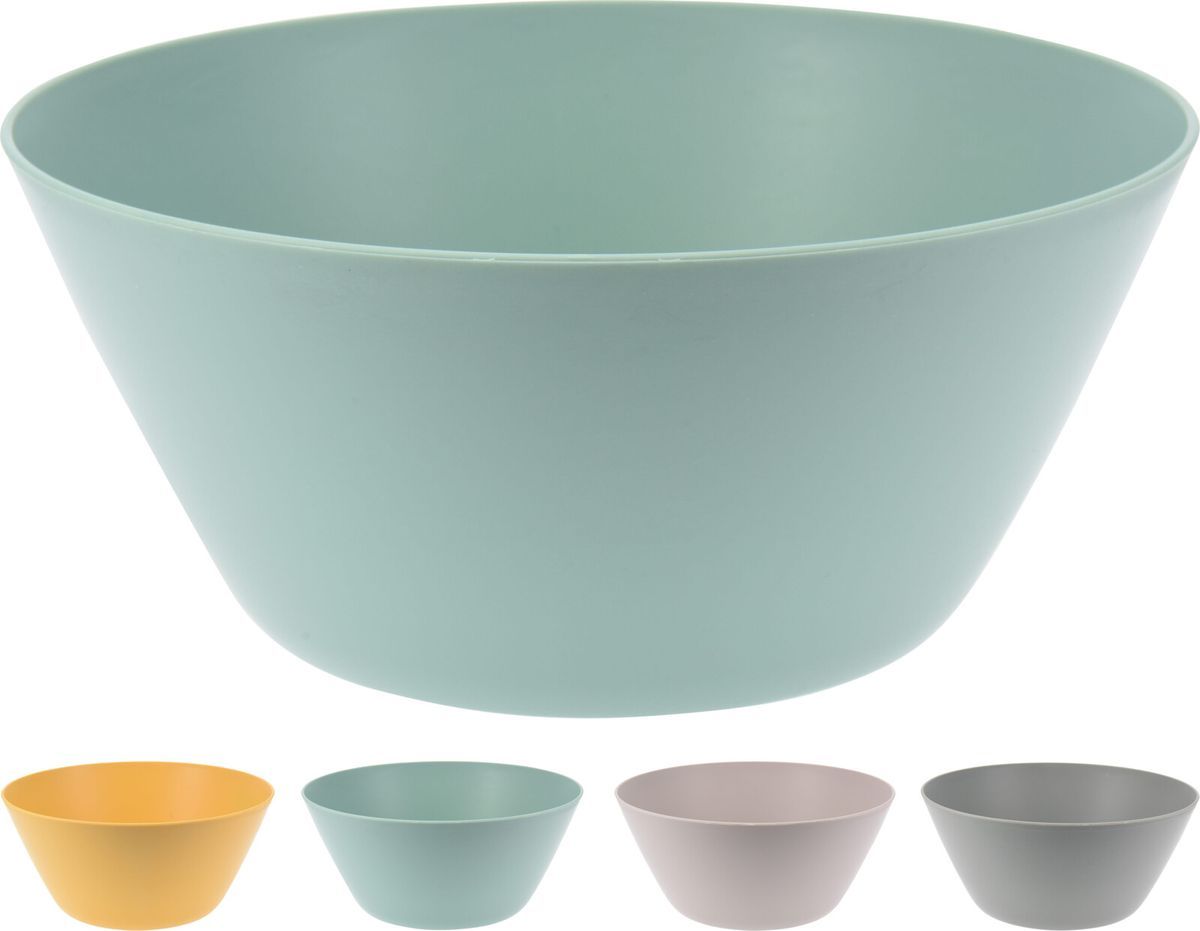 Tazón de plástico de 600 ml en cuatro colores suaves: verde, naranja, rosa y gris. Ideal para mezclar ingredientes, servir ensaladas o como recipiente decorativo en cocina y comedor. Diseño moderno y acabado mate para un uso diario cómodo y elegante.