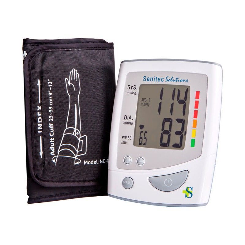Tensiómetro de brazo Sanitec HL868ZA con pantalla digital clara y fácil lectura. Ideal para adultos que desean monitorear su presión arterial en casa. Incluye manguito ajustable para brazo adulto y sistema de indicación de colores para niveles de presión. Diseño compacto y funcional, con botones intuitivos y memoria para seguimiento de lecturas. Fa
