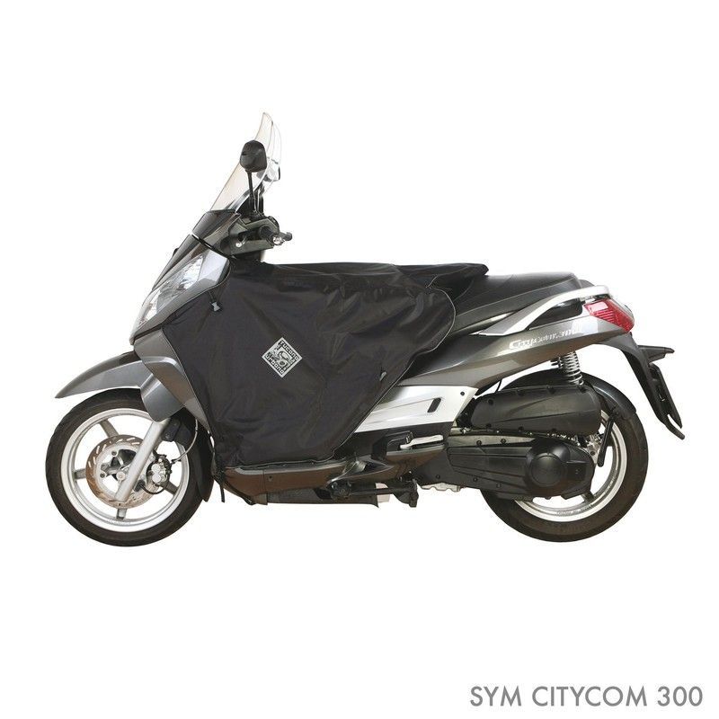 Cubierta protectora Termoscud R073 para SYM Citycom 125/300/S300, fabricada en poliéster resistente. Diseño ajustado y liso en color negro con logotipo bordado. Ideal para proteger tu moto del polvo, la lluvia y los rayos UV. Fácil de colocar y retirar, perfecta para uso diario o almacenamiento. Incluye cierre lateral para mayor seguridad.