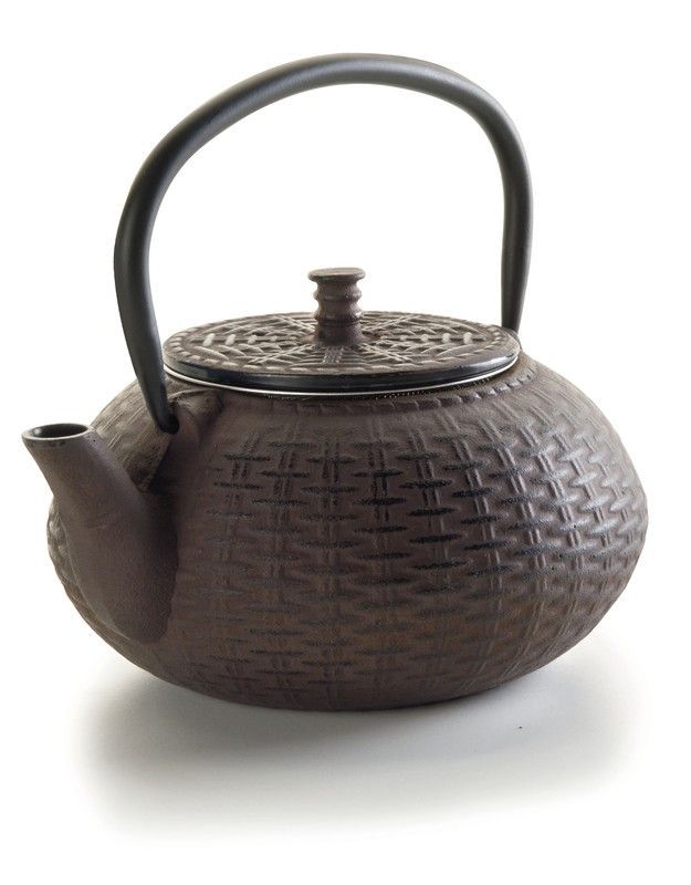 Tetera de hierro fundido de 0,8 L en color marrón, ideal para preparar té y infusiones con sabor auténtico. Su diseño texturizado en forma de tejido trenzado aporta un toque tradicional y elegante. Resistente y duradera, perfecta para uso diario en casa o en el jardín. Incluye tapa con pomo y asa curva para un manejo seguro y cómodo.