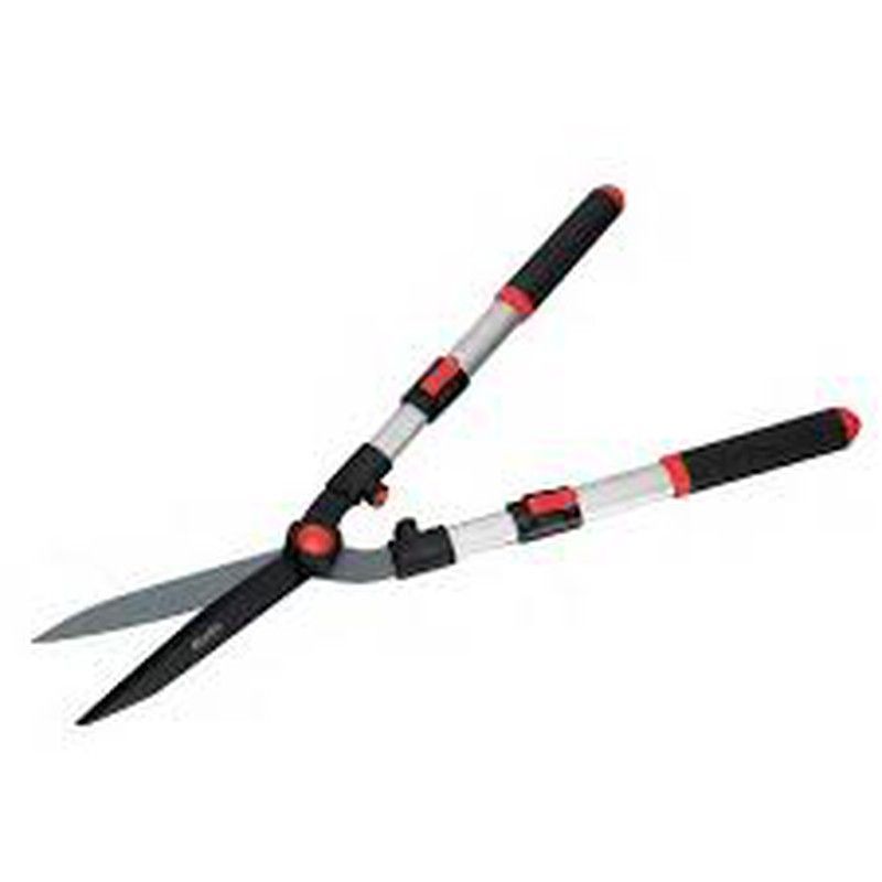 Tijera cortasetos extensible de 660-860 mm, ideal para jardinería y poda de arbustos. Con mango ergonómico en negro y rojo con agarre antideslizante, hojas de acero inoxidable resistentes y mecanismo de extensión para alcanzar zonas altas con comodidad. Perfecta para jardineros y amantes del jardín que buscan precisión y facilidad de uso.