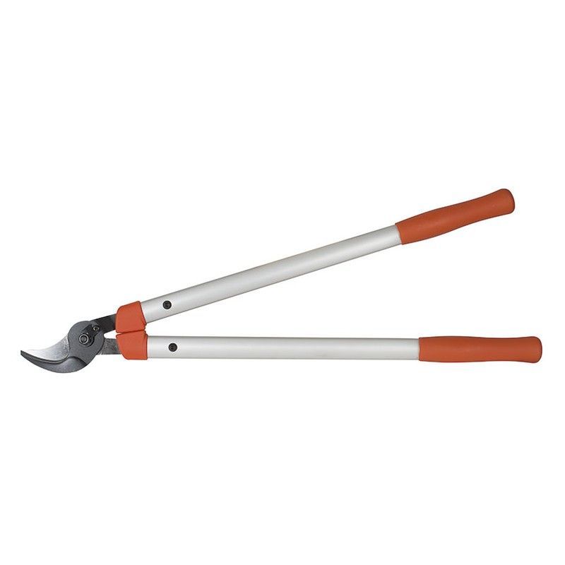 Tijera podadora profesional LISTA 6734 con manijas de aluminio de 60 cm y mangos de goma naranja para un agarre seguro. Cuchillas de acero inoxidable de alta calidad, ideales para podar ramas gruesas con precisión. Perfecta para jardinería y mantenimiento de árboles y arbustos. Diseño ergonómico que reduce la fatiga en el uso prolongado.