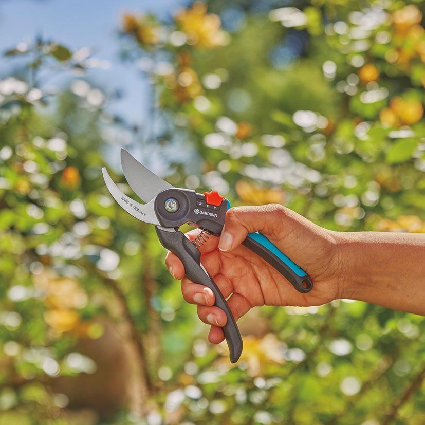 Tijera Supercut Flex para jardinería, con hojas de acero inoxidable y manijas ergonómicas con recubrimiento de goma para un agarre seguro. Ideal para podar ramas finas y mantener tu jardín en perfecto estado. Diseño compacto y ligero, con ajuste fácil mediante botón rojo. Perfecta para jardineros aficionados y profesionales que buscan precisión y c