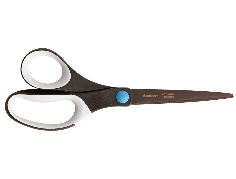 Tijeras de titanio Scotch de 20 cm, ideales para manualidades y trabajos precisos. Con mango ergonómico negro y blanco para mayor comodidad, y hojas de acero inoxidable de alta calidad. Perfectas para cortar papel, tela y otros materiales finos. Diseño moderno y duradero, ideal para artesanos, estudiantes y amantes del bricolaje.