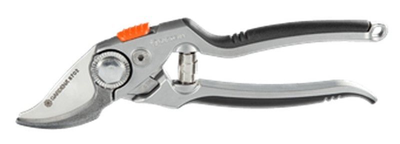 Tijeras de podar Gardena BP 50 Premium para rosales, con cuchillas de acero inoxidable y mango ergonómico en negro con detalles naranja. Diseño robusto y ajuste de tensión para cortes precisos y cómodos. Ideal para jardineros que buscan calidad y durabilidad en herramientas de jardín.