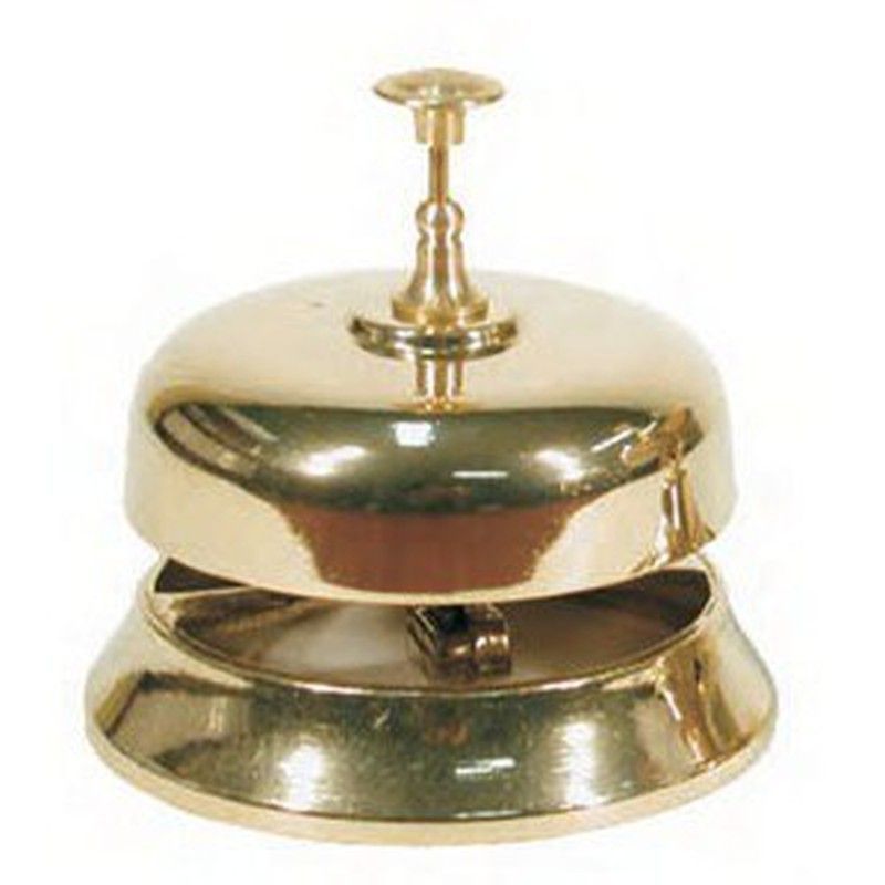 Timbre sobremesa de metal con acabado dorado brillante, ideal para eventos, recepciones o decoración de mesas. Su diseño clásico y sonido claro lo convierten en un accesorio elegante y funcional para fiestas, celebraciones o espacios comerciales. Fácil de usar y de mantenimiento.