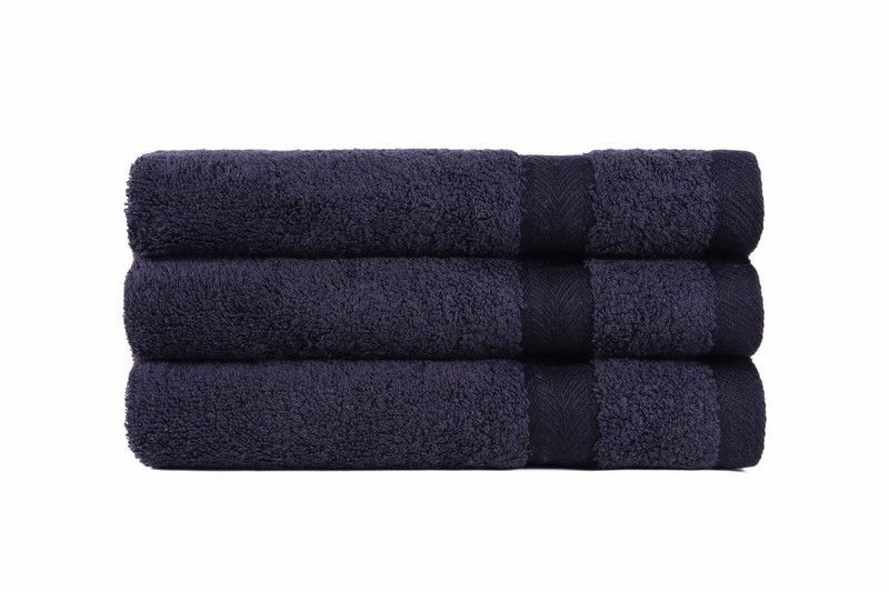 Toalla de mano de algodón de alta calidad en color azul oscuro, ideal para uso diario en el hogar. Con textura suave y absorbente, perfecta para manos y rostro. Diseño elegante con banda decorativa en el borde. Pack de 3 unidades, ideal para baños modernos y cuidado personal.