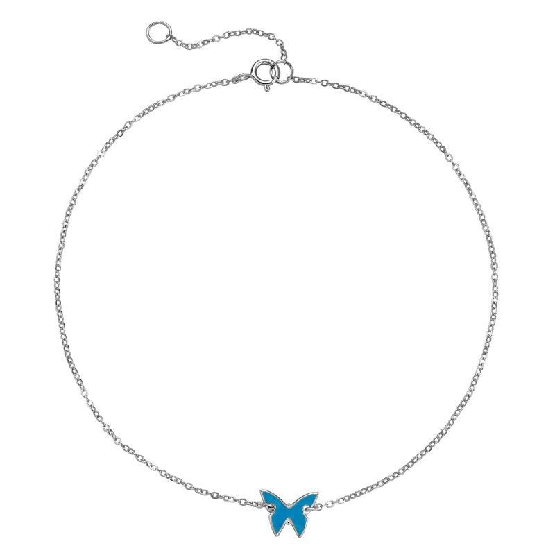 Tobillera Plata 26cm TOL0014RHETXX Mariposa Enamel Turquesa