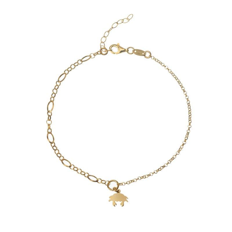 Tobillera dorada con diseño elegante y colgante en forma de cangrejo, ideal para mujeres que buscan un toque de estilo y originalidad. Fabricada en metal con acabado dorado, cuenta con cadena ajustable de 21+3 cm y cierre de mosquetón seguro. Perfecta para combinar con vestidos de verano o looks casuales, añade un detalle único a tu look.