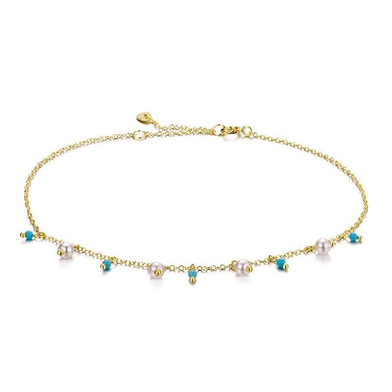 | Nombre | Tobillera Plata Dorada 22+4cm TO00004DO Mineral Turquesa Perlas |