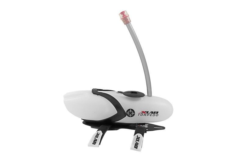 Portabidones Torpedo System 50+ de XLAB, ideal para ciclistas que buscan hidratación eficiente durante sus salidas. Diseño aerodinámico y ligero, fabricado en plástico resistente y goma flexible. Incluye bidón blanco con tubo de succión y soporte ajustable para una instalación segura en el tubo superior de la bicicleta. Perfecto para entrenamientos