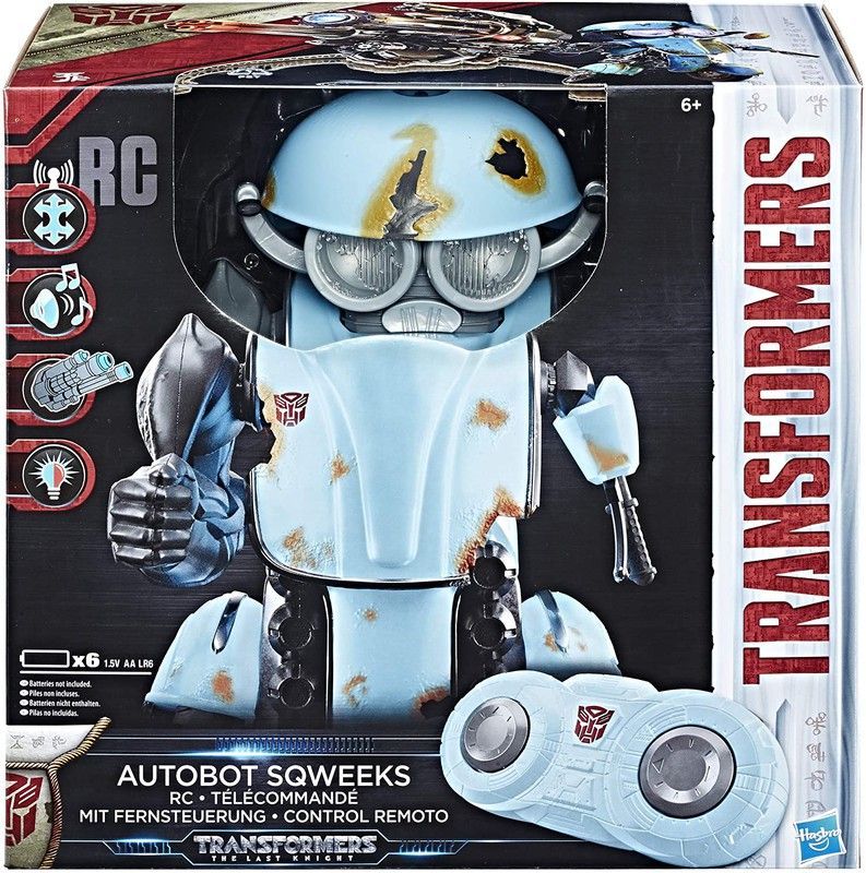 Transformers 5 Squeeks Radio Control: juguete robot Autobot con control remoto para niños. Diseño detallado con efectos de batalla, colores azul claro y gris, y mando a distancia incluido. Ideal para fans de Transformers que disfruten de acción y tecnología. A partir de 6 años.