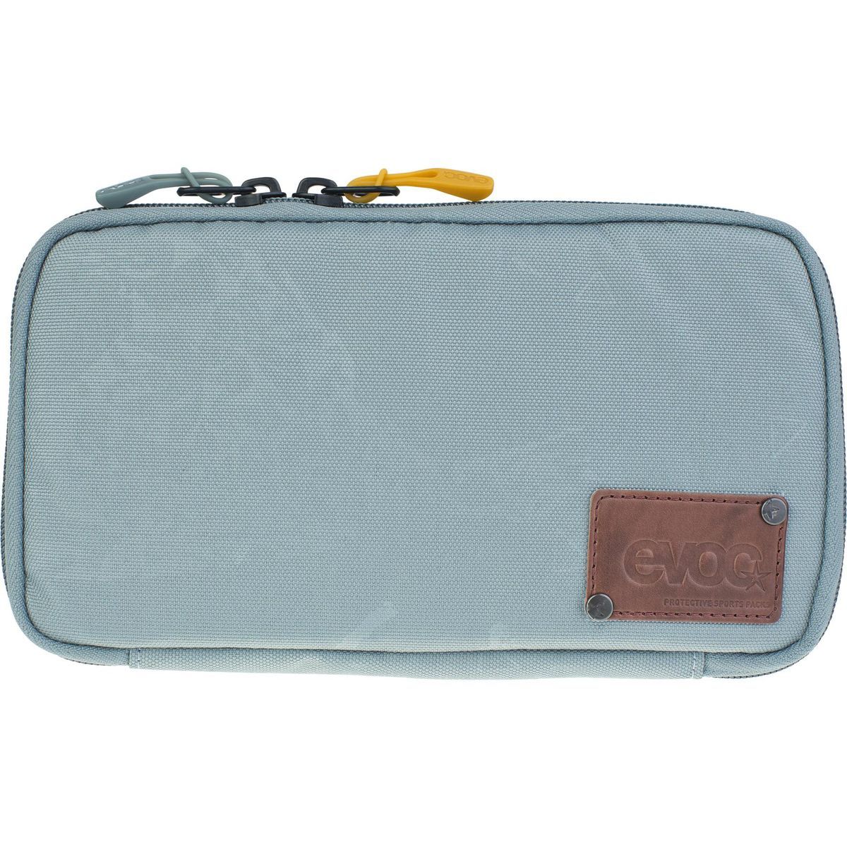 Bolsa de viaje EVOC en lona azul claro, ideal para ciclistas que necesitan organizar sus accesorios. Con cierre de cremallera y etiqueta de cuero con logo, ofrece durabilidad y estilo. Perfecta para llevar herramientas, repuestos o pequeños objetos en tus salidas en bici. Diseño funcional y resistente, pensado para el uso diario en actividades al a