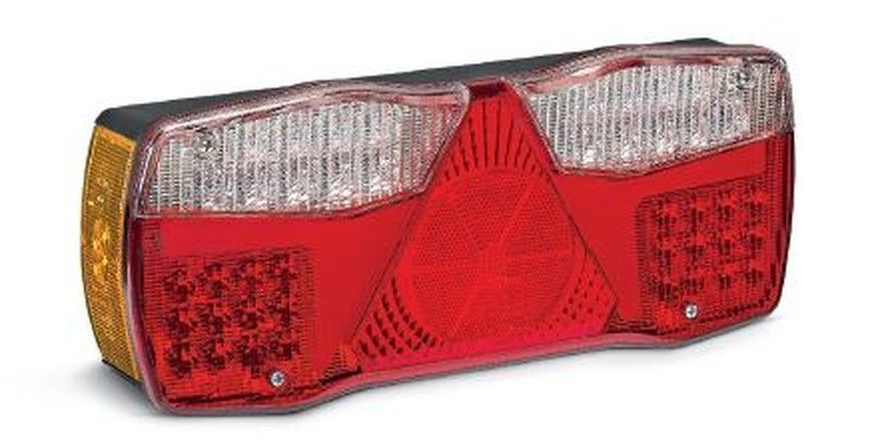 Luz trasera Tulipa Serie 3192 para vehículos motorizados, con diseño moderno y acabado en rojo y amarillo. Fabricada en plástico y vidrio, ofrece alta visibilidad y durabilidad. Ideal para camiones, furgonetas y vehículos comerciales. Incluye secciones LED para freno, marcha atrás y señal de giro. Instalación sencilla y resistente a condiciones cli