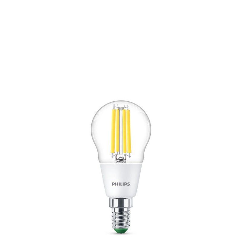 Bombilla LED esférica Philips de 2,3 W con luz blanca neutra (4000K), ideal para iluminación hogareña. Diseño clásico con filamentos LED visibles, base E14 y acabado elegante. Ahorra energía y dura más que las bombillas tradicionales. Perfecta para lámparas de techo, mesitas o apliques.
