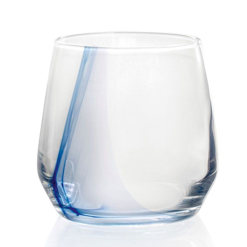 Vaso Bicch Vtr Breeze de 37 cl, fabricado en vidrio de alta calidad con un diseño elegante y moderno. Destaca por su línea azul vertical que aporta un toque sofisticado. Ideal para servir agua, cócteles o bebidas frías en casa o en eventos. Su forma curvada y base ancha lo hacen estable y fácil de sostener. Perfecto para cualquier mesa de comedor o