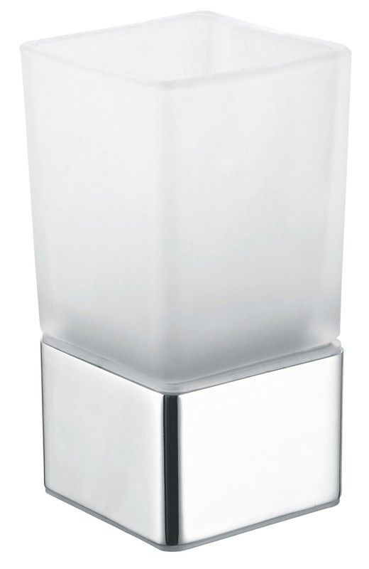 Vaso de baño cuadrado AC_237 PyP con base de acero inoxidable cromado y cuerpo de vidrio opalino. Diseño elegante y moderno, ideal para baños con estilo minimalista. Fácil de limpiar y resistente al agua. Combina funcionalidad y estética para un toque sofisticado en tu cuarto de baño.