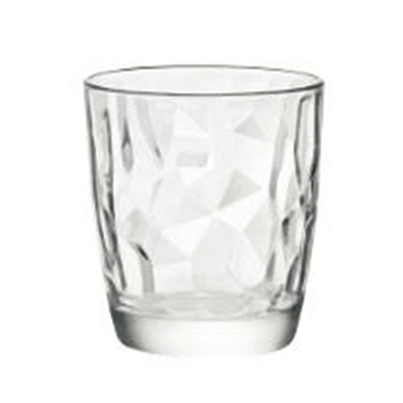 Vaso Diamond de Bormioli, fabricado en vidrio de alta calidad con diseño facetado geométrico que aporta elegancia a cualquier mesa. Ideal para agua, cócteles o bebidas frías. Juego de 3 vasos resistentes y con acabado sofisticado, perfectos para uso diario o ocasiones especiales. Diseño moderno y versátil para tu cocina o comedor.