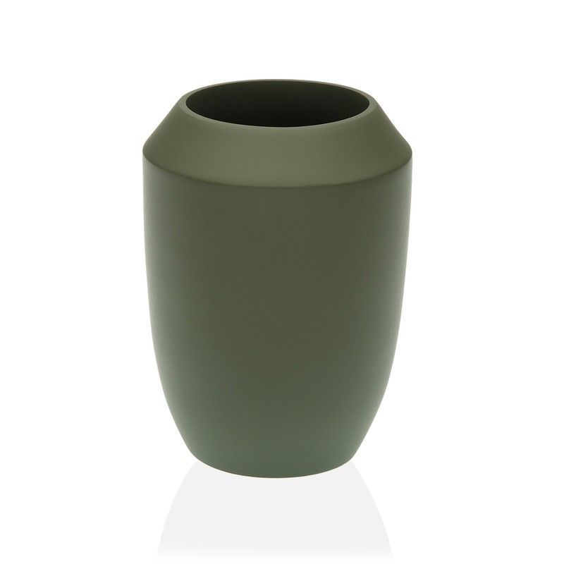 Vaso portacepillos de baño en color verde, fabricado en cerámica de alta calidad con acabado mate. Diseño moderno y minimalista ideal para decorar tu baño con estilo. Perfecto para mantener tus cepillos de dientes organizados y a la vista. Fácil de limpiar y resistente al uso diario.