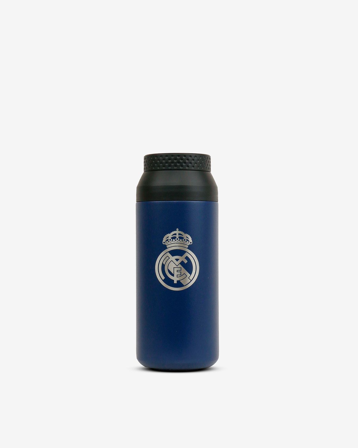 Vaso térmico Runbott Original Cup de 350 ml en color azul marino con el escudo del Real Madrid en relieve plateado. Fabricado en acero inoxidable, mantiene tus bebidas calientes o frías durante horas. Ideal para aficionados al fútbol que buscan calidad y estilo en su día a día. Perfecto para el trabajo, el gimnasio o los viajes.