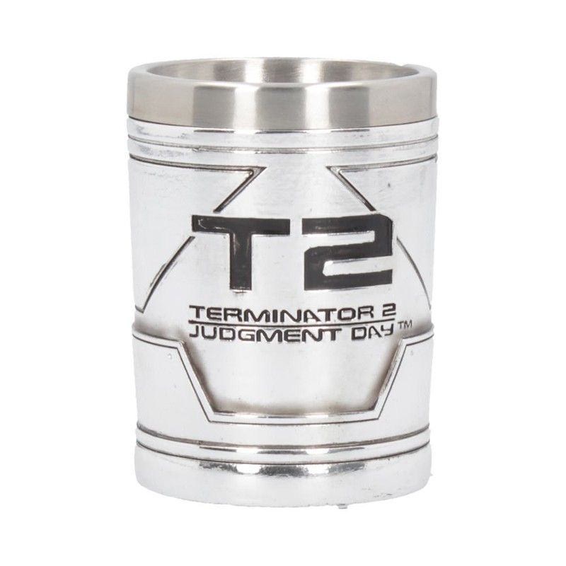 Vaso de chupito oficial de Terminator 2: Judgment Day, fabricado en acero inoxidable de alta calidad. Ideal para fans de la saga, con diseño icónico en plateado y negro que recrea el estilo futurista del T-800. Perfecto para disfrutar bebidas en cualquier ocasión temática o como regalo para amantes del cine de ciencia ficción.