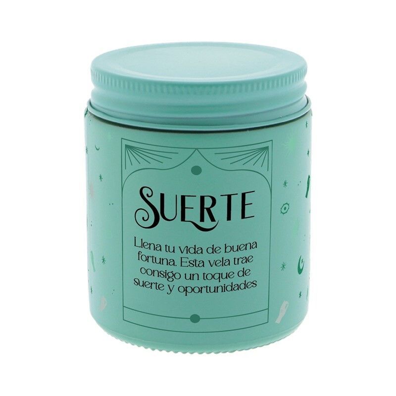 Vela aromática Green Suerte en bote de color verde claro, ideal como regalo para quienes buscan buena fortuna y oportunidades. Con un diseño elegante y mensaje inspirador, esta vela aporta un toque mágico a cualquier espacio. Perfecta para decorar y disfrutar de un ambiente cálido y positivo.