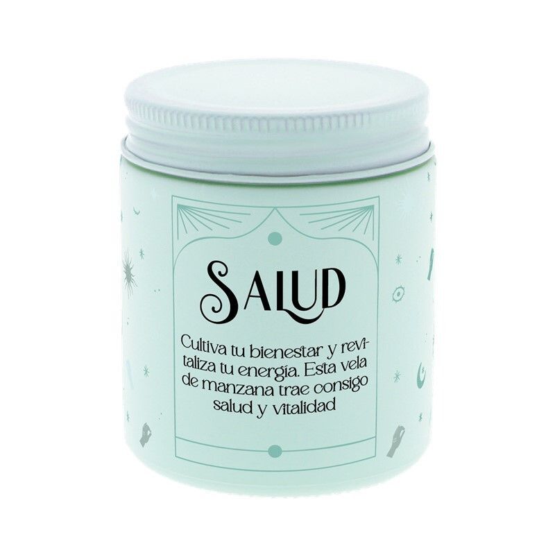 Vela aromática Mint Salud en bote de color verde claro con tapa blanca, ideal para regalo. Cultiva tu bienestar y revitaliza tu energía con esta vela de manzana que trae salud y vitalidad. Perfecta para decorar y perfumar espacios con un toque fresco y natural.