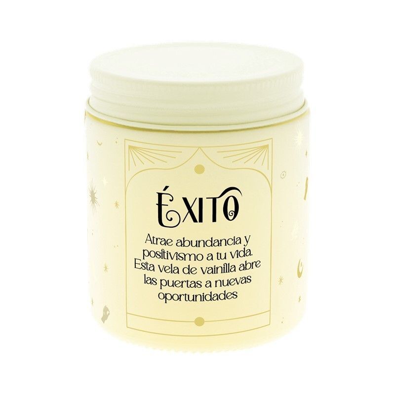 Vela aromática Yellow Éxito, ideal para regalo. Con aroma a vainilla, atrae abundancia y positivismo. Su diseño elegante en tonos crema y dorado la convierte en un accesorio decorativo perfecto para cualquier hogar. Abre puertas a nuevas oportunidades con cada llama.