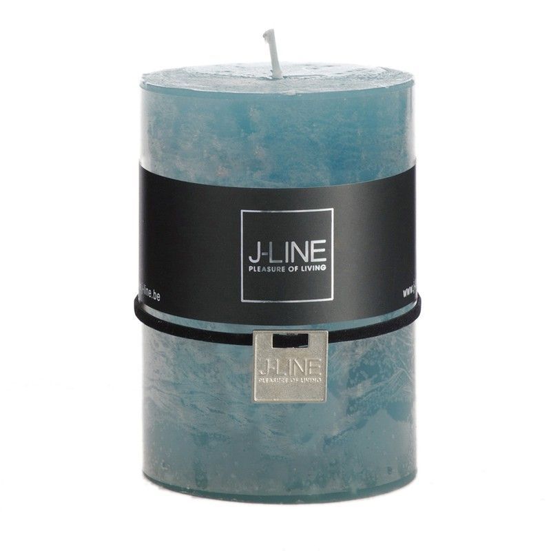 Vela cilíndrica de cera en tono azul con acabado texturizado, ideal para decorar espacios con estilo y elegancia. Presentada con banda negra y etiqueta metálica con el logo J-LINE, aporta un toque sofisticado a cualquier ambiente. Perfecta para crear una atmósfera acogedora y relajante en casa.