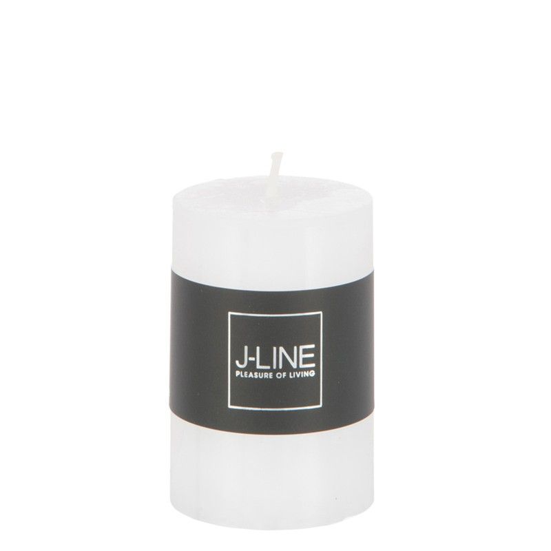 Vela cilíndrica de cera blanca de 5x5x8 cm, ideal para decorar espacios con estilo minimalista. Con etiqueta negra con logotipo J-LINE, aporta un toque sofisticado a tu hogar. Perfecta para crear ambientes cálidos y acogedores en salones, mesas o estanterías. Calidad premium para disfrutar de un aroma sutil y una llama estable.
