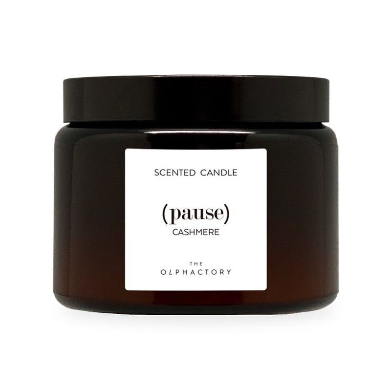 Vela perfumada Cashmere de 360 grs de The Olphactory, con una duración de hasta 60 horas. Presentada en un elegante bote de vidrio oscuro con tapa negra y etiqueta minimalista. Ideal para crear un ambiente cálido y sofisticado en tu hogar. Fragancia suave y envolvente, perfecta para momentos de relajación y bienestar.