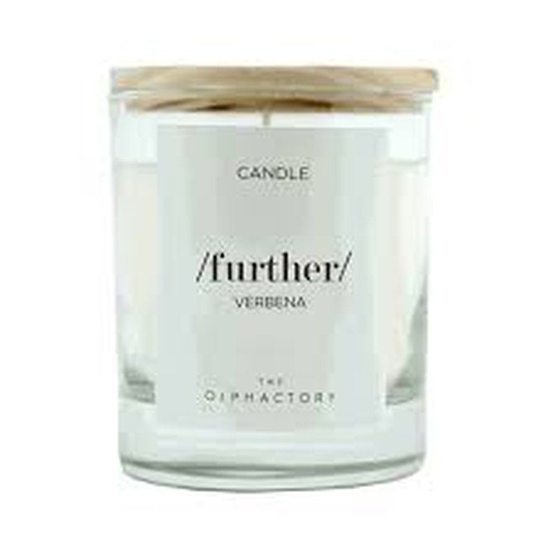 Vela perfumada Verbena de 200 grs de The Olphactory, con aroma fresco y natural. Presentada en un frasco de vidrio transparente con tapa de madera y etiqueta minimalista. Ideal para ambientar espacios con estilo y sofisticación. Perfecta para hogares modernos que buscan fragancias delicadas y duraderas.