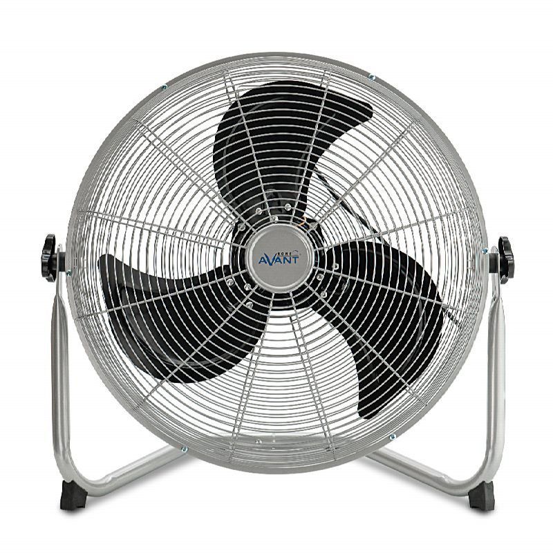 Ventilador circulador de suelo de 18 pulgadas con potencia de 110W, ideal para espacios medianos y grandes. Diseño robusto en metal plateado con aspas negras y base estable. Perfecto para mejorar la circulación del aire en hogar, oficina o taller. Fácil de usar y ajustar gracias a sus controles laterales. Calidad duradera y eficiente.