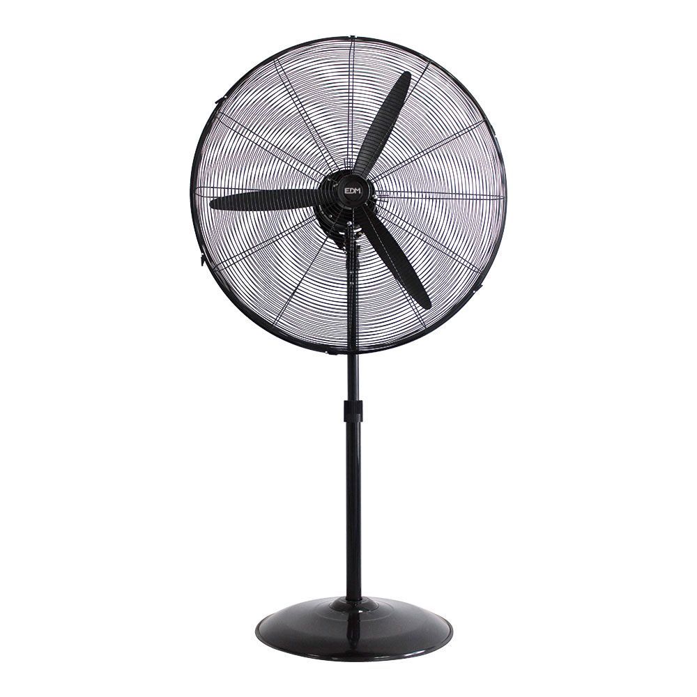 Ventilador de pie industrial negro con base circular y oscilación, ideal para espacios grandes. Con aspas de 60 cm y altura regulable de 117 a 156 cm, ofrece una potente circulación de aire. Fabricado en metal y plástico resistente, perfecto para uso en talleres, oficinas o hogares. Potencia de 180 W para un rendimiento eficiente y duradero.