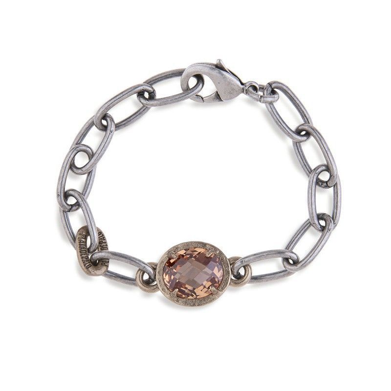 Pulsera WB326X para mujer en plata de palo con diseño sofisticado. Cadenas de eslabones metálicos con acabado mate y piedra ovalada de tono marrón claro que aporta elegancia. Ideal para looks diarios o eventos especiales. Cierre seguro tipo mosquetón. Joyería de calidad para mujeres que buscan estilo y distinción.