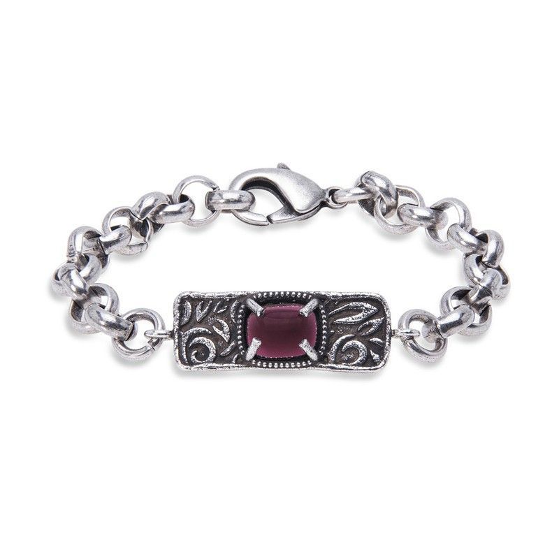 | Nombre | WB383X Pulsera Plata de Palo modelo Delia para mujer, chapa adornada con un cabujón de granate natural, añadiendo un toque de color y sofisticación a tu look |
